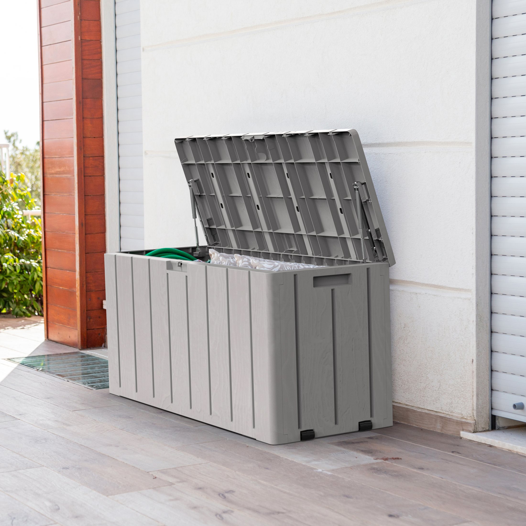 The Bravo 270 Plus multibox combines the practicality of plastic with the natural aesthetics of wood. Crafted with high-quality materials that faithfully replicate the warmth and beauty of natural wood, it provides a versatile solution for household storage. Equipped with pistons that facilitate opening and closing, featuring a weather-resistant design, it's suitable for both indoor and outdoor use, ensuring protection for stored items. Easy to clean and maintain, it's the perfect choice for those seeking practicality without sacrificing elegance.