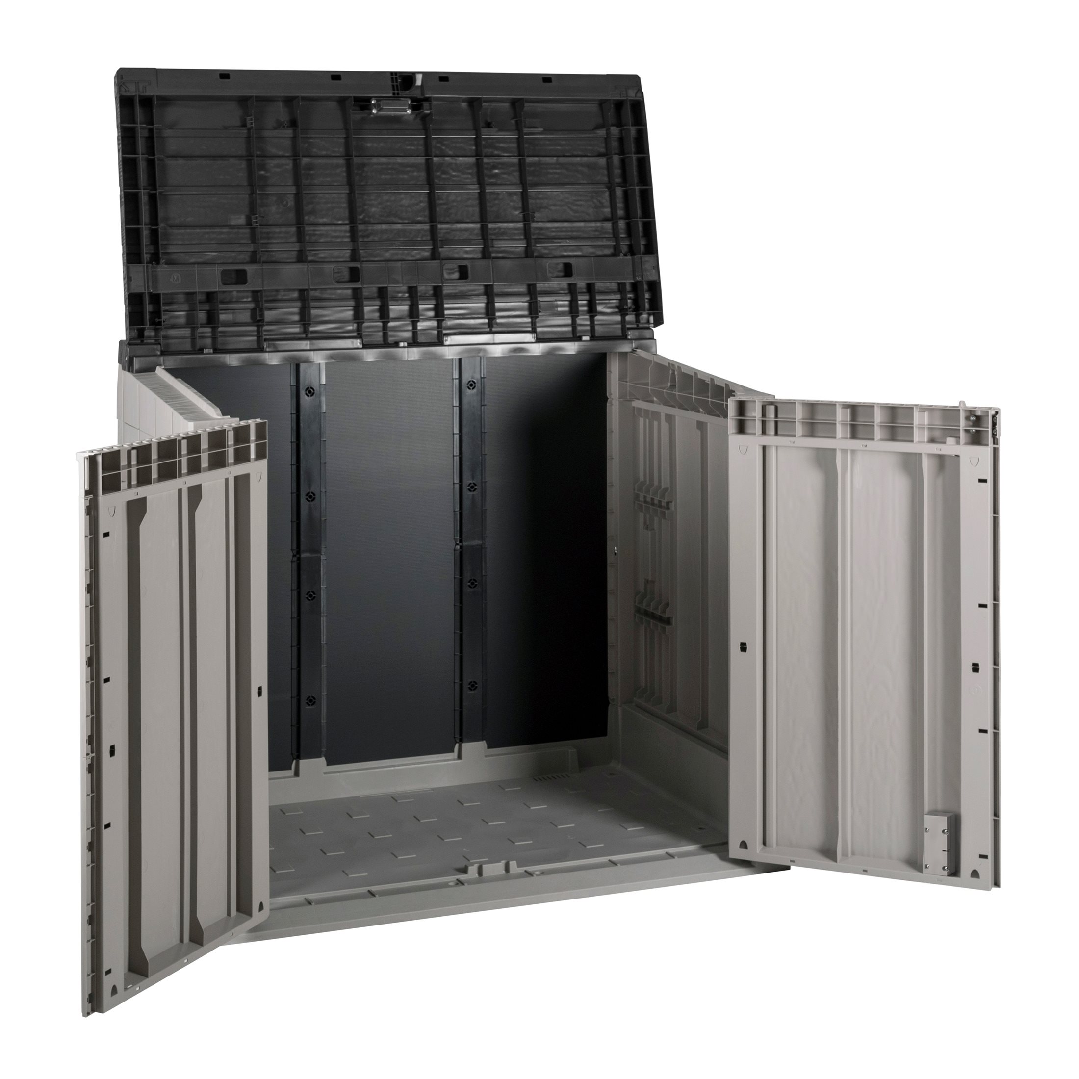 Il Baule portattrezzi Stora Way Plus XL è la soluzione perfetta per riporre attrezzi e attrezzature da giardino di grandi dimensioni. La sua capienza massima di 1270L permette infatti di conservare comodamente sdraie, tosaerba e tanti altri oggetti. L’apertura è facilitata grazie alla presenza di pistoni e il foro per lucchetto offre la possibilità di chiudere il tutto in completa sicurezza (lucchetto non fornito). È realizzato in plastica riciclata e riciclabile (polipropilene), resistente ai raggi UV.