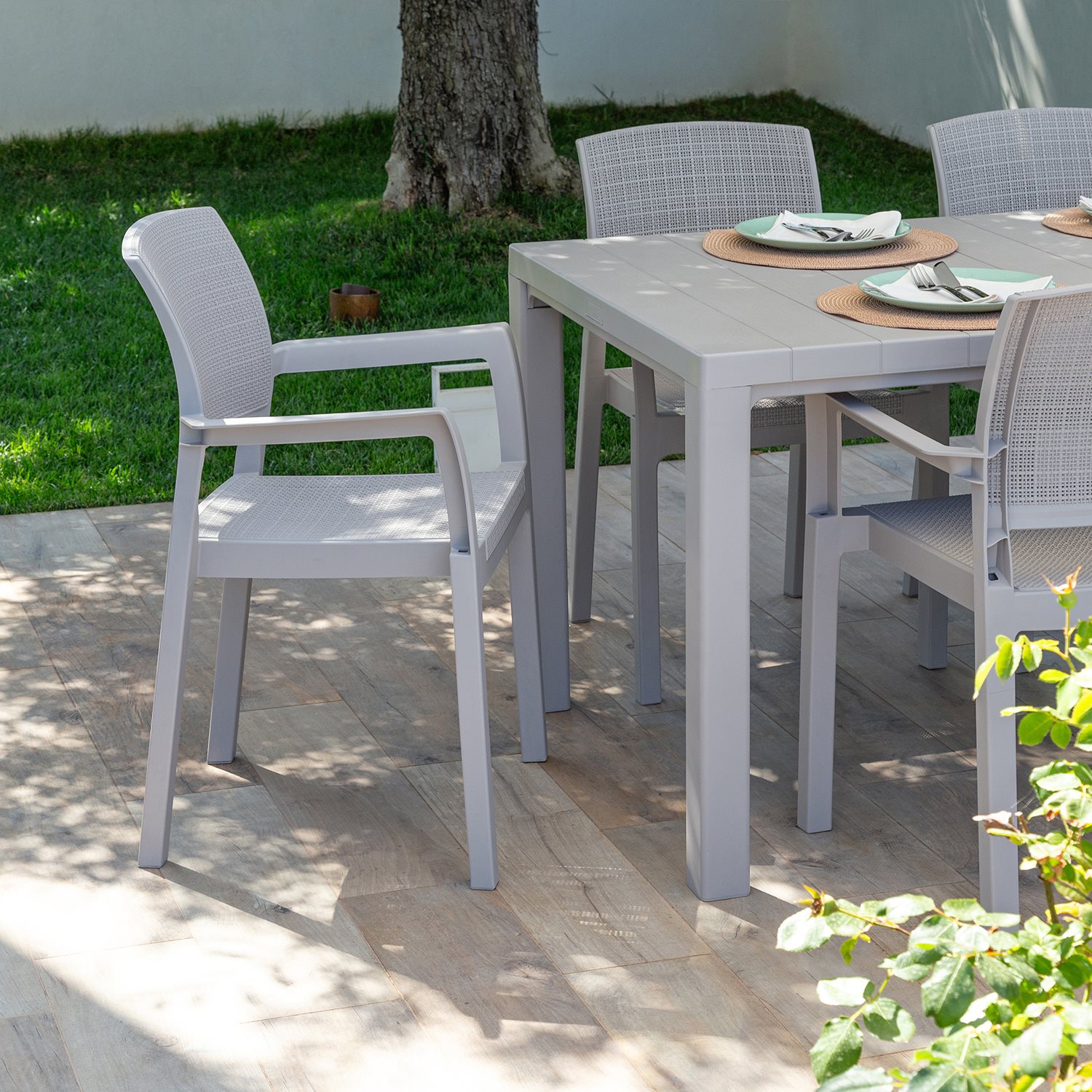 The Alba chair offers a charming combination of natural aesthetics and modern practicality. Made of high-quality plastic materials, this chair offers an elegant solution for both indoor and outdoor furniture. Its ergonomic design ensures optimal comfort during prolonged use, while the lightweight construction makes the chair easily transportable and suitable for different environments.