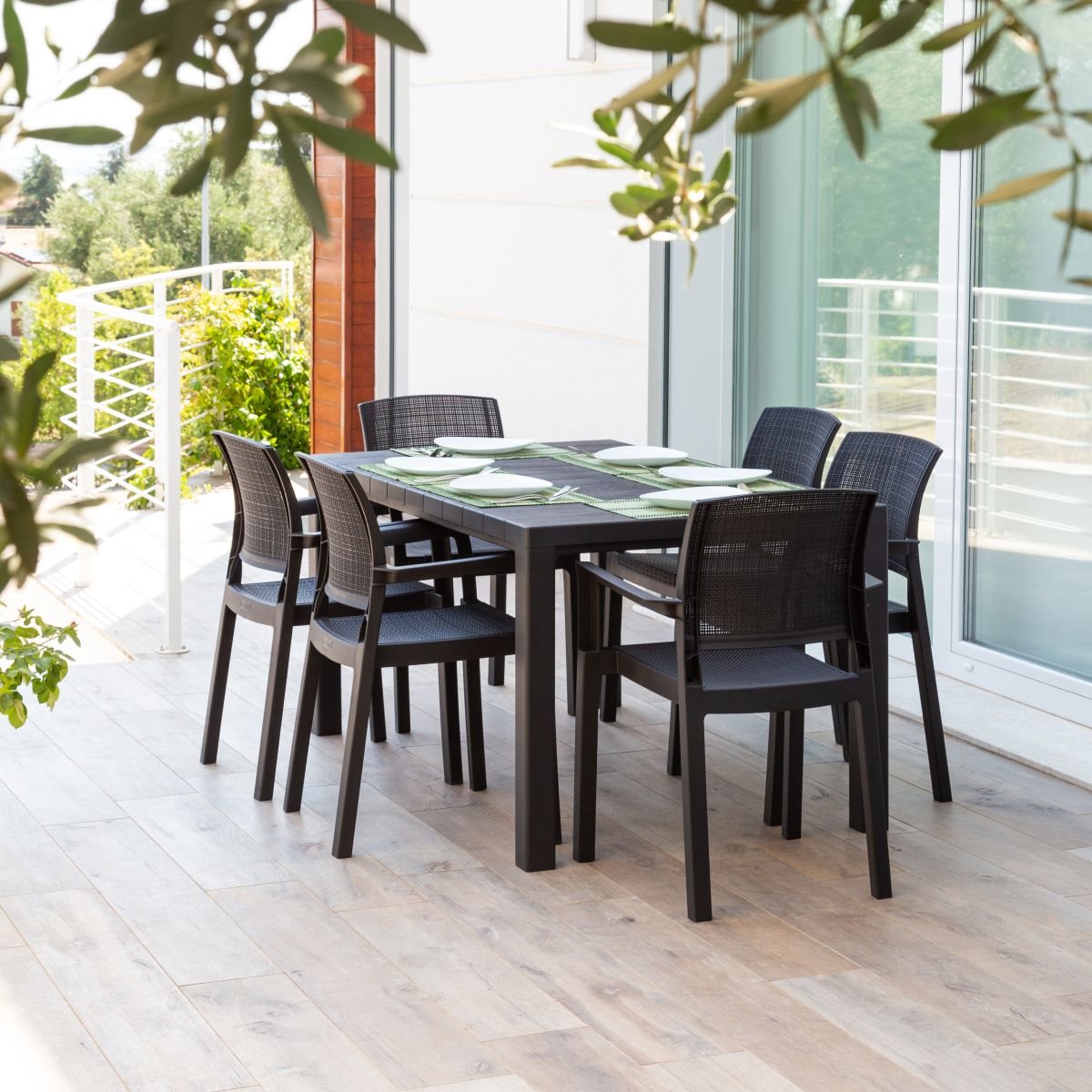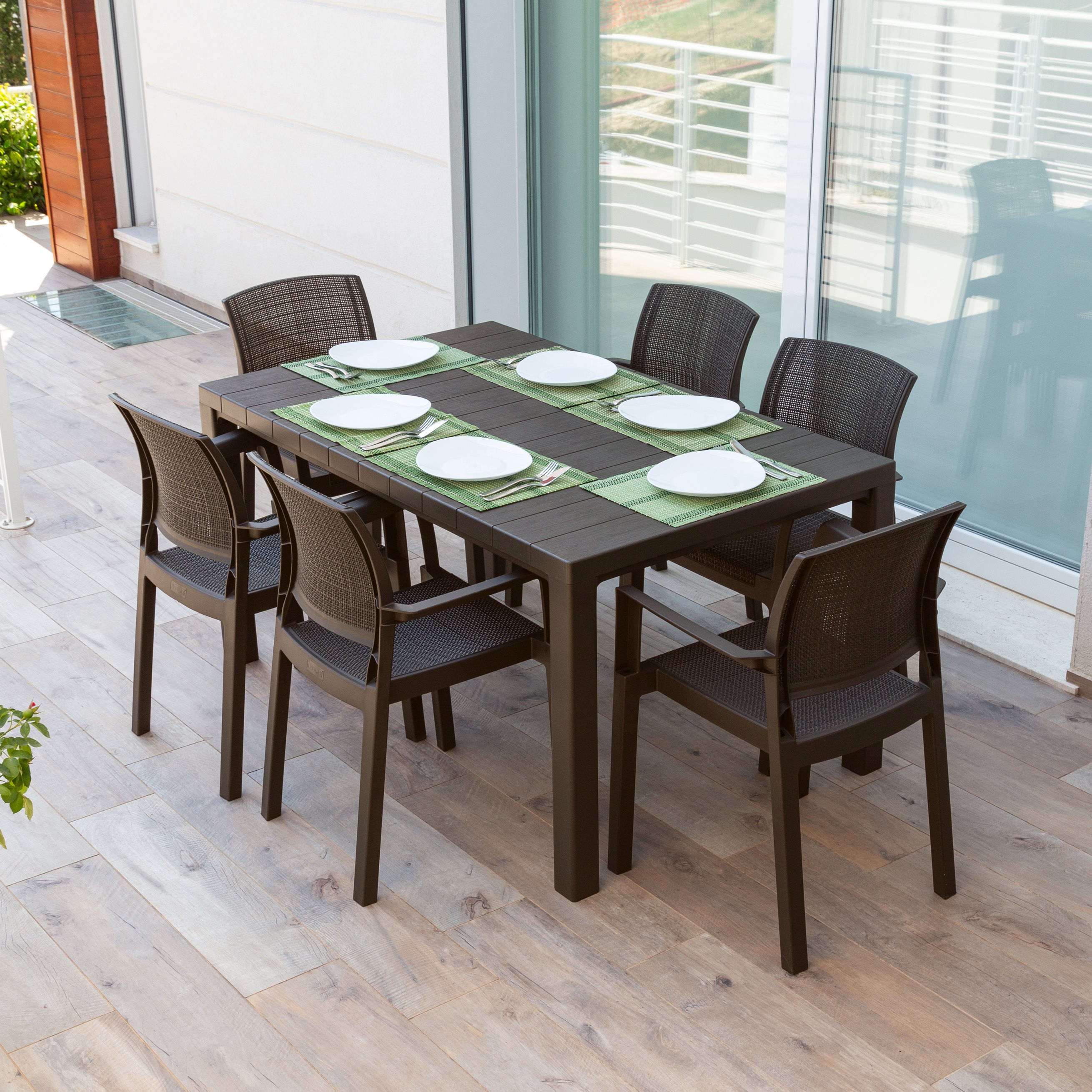 The Davide coffee table with a wood-effect finish is a versatile choice for indoor and outdoor environments. It has a capacity that varies between 4 and 6 seats. It does not require tools for assembly and is resistant to UV rays. It combines practicality and aesthetics, offering a functional and stylish solution to furnish your spaces with simplicity and elegance.