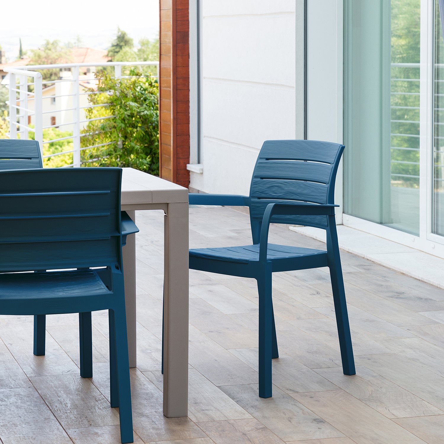 La sedia Recanati di Toomax è una soluzione confortevole per l'arredo di esterni. Dotata di braccioli, le sedie sono impilabili. Adatta ad usi interni ed esterni, è resistente ai raggi UV.