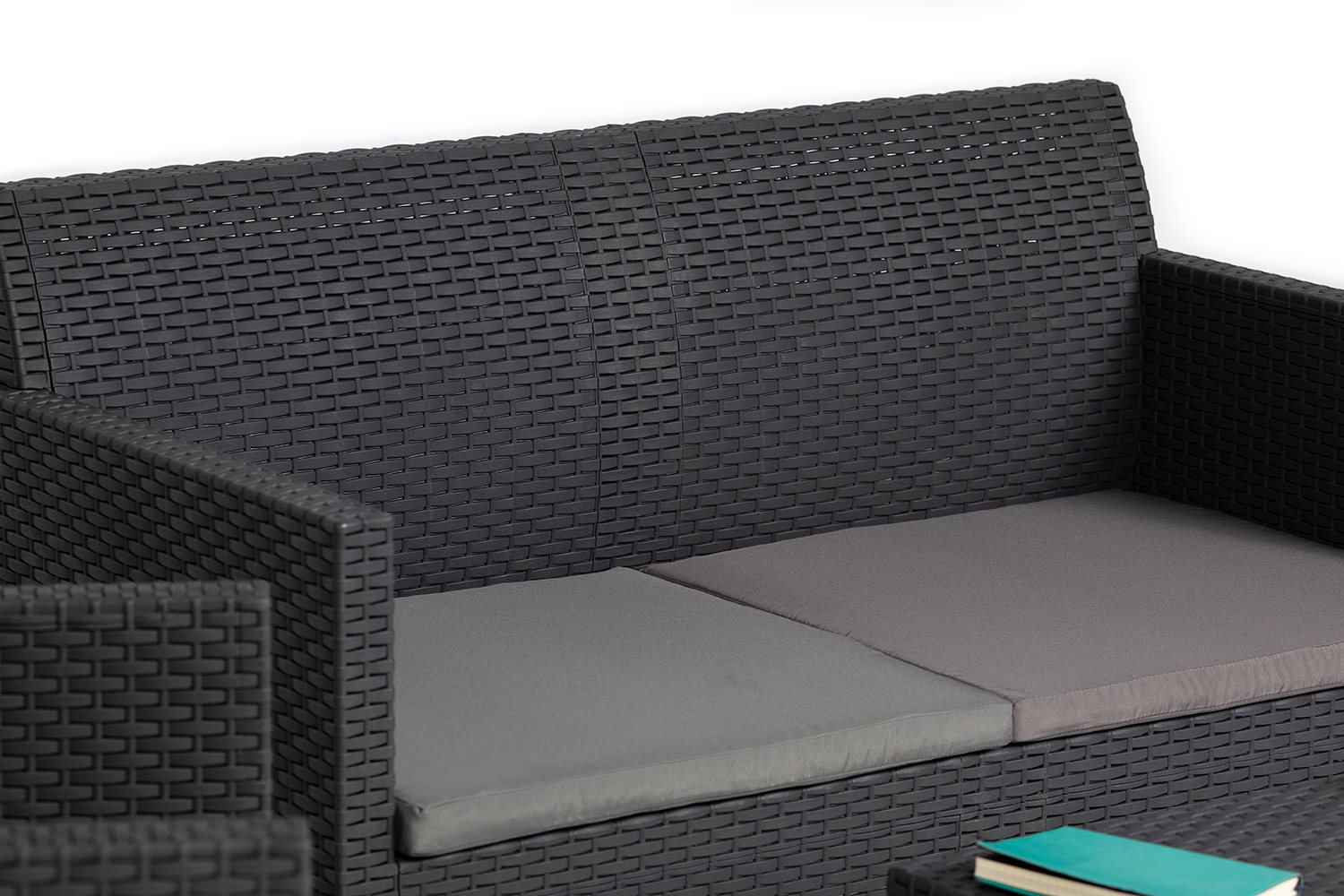The Toomax Leda polypropylene garden set is perfect for small outdoor spaces. It includes two armchairs with padded cushions and a matching coffee table, providing a corner of relaxation and comfort. Made of durable polypropylene, this set is designed to last and requires little maintenance. The modern design and black color add a touch of elegance to any outdoor environment. Ideal for terraces, balconies and gardens, the Toomax Leda set combines functionality and style, ensuring an exceptional outdoor relaxation experience.