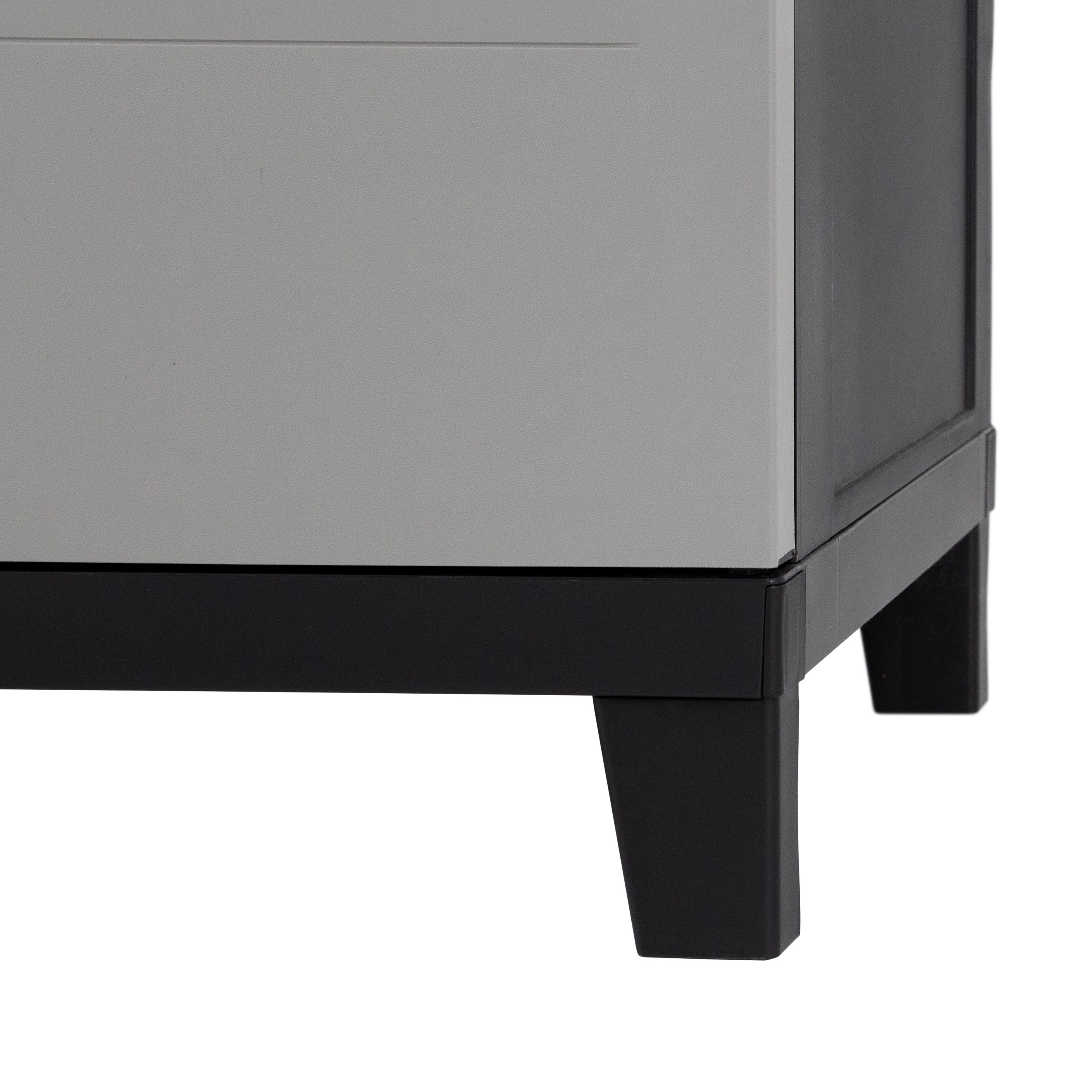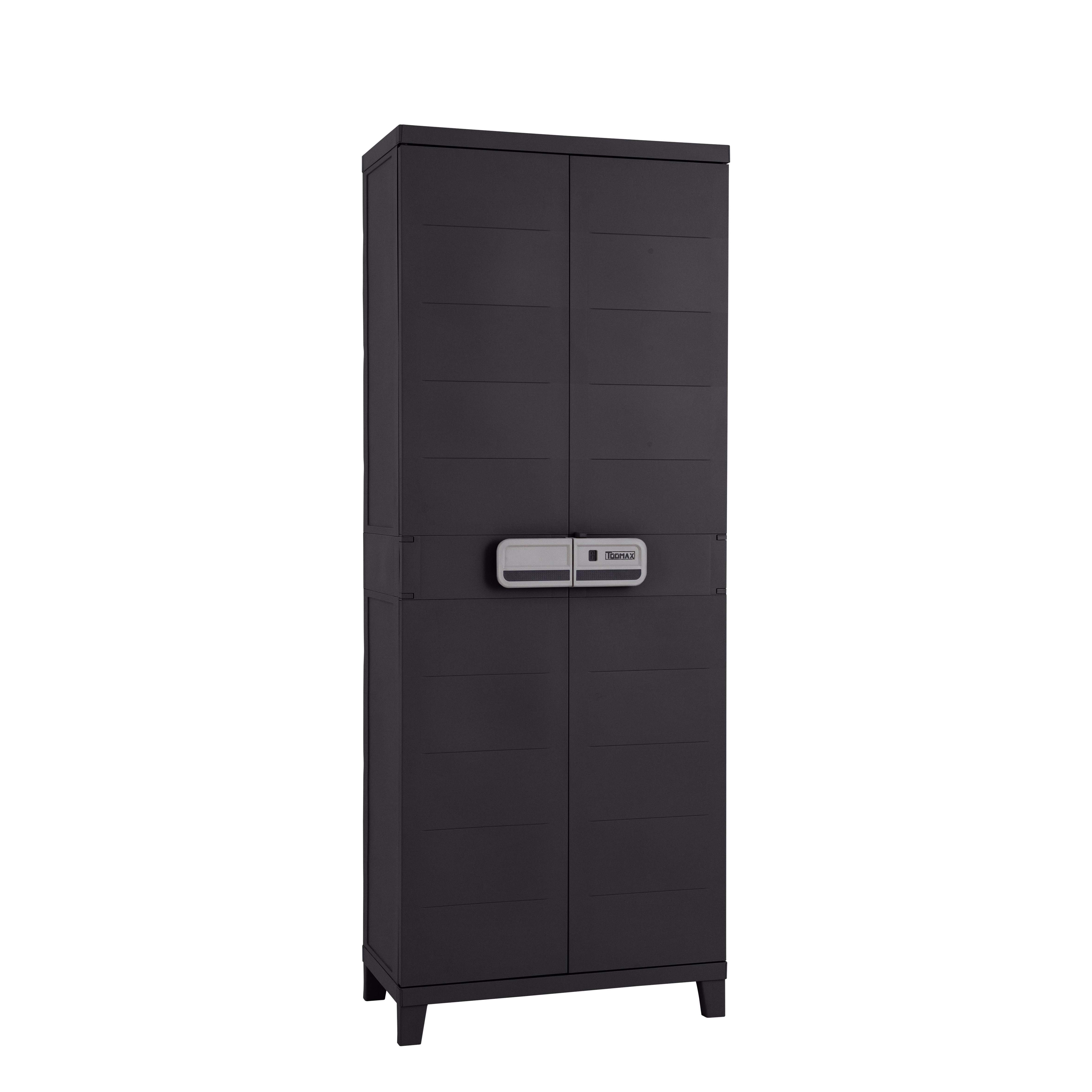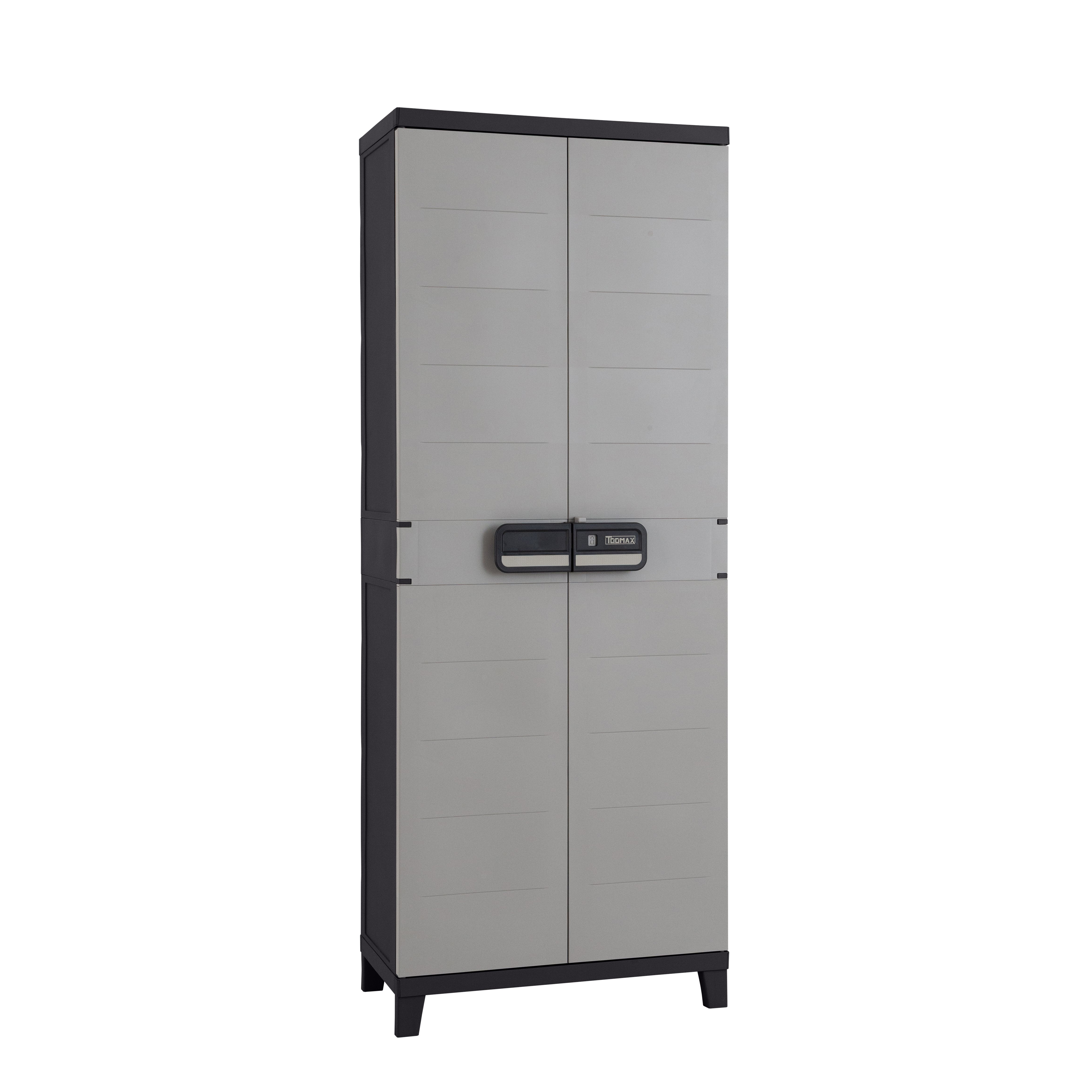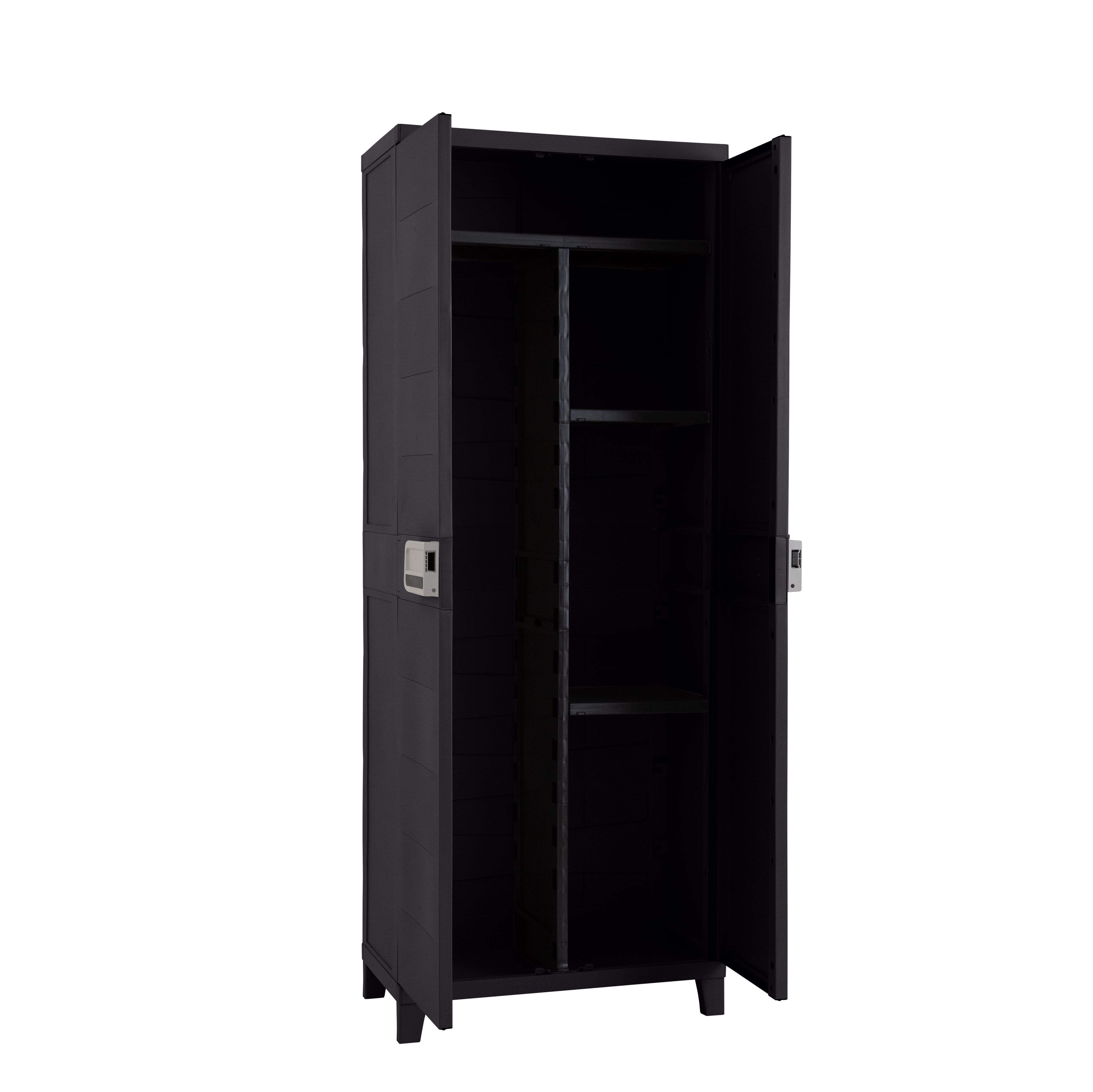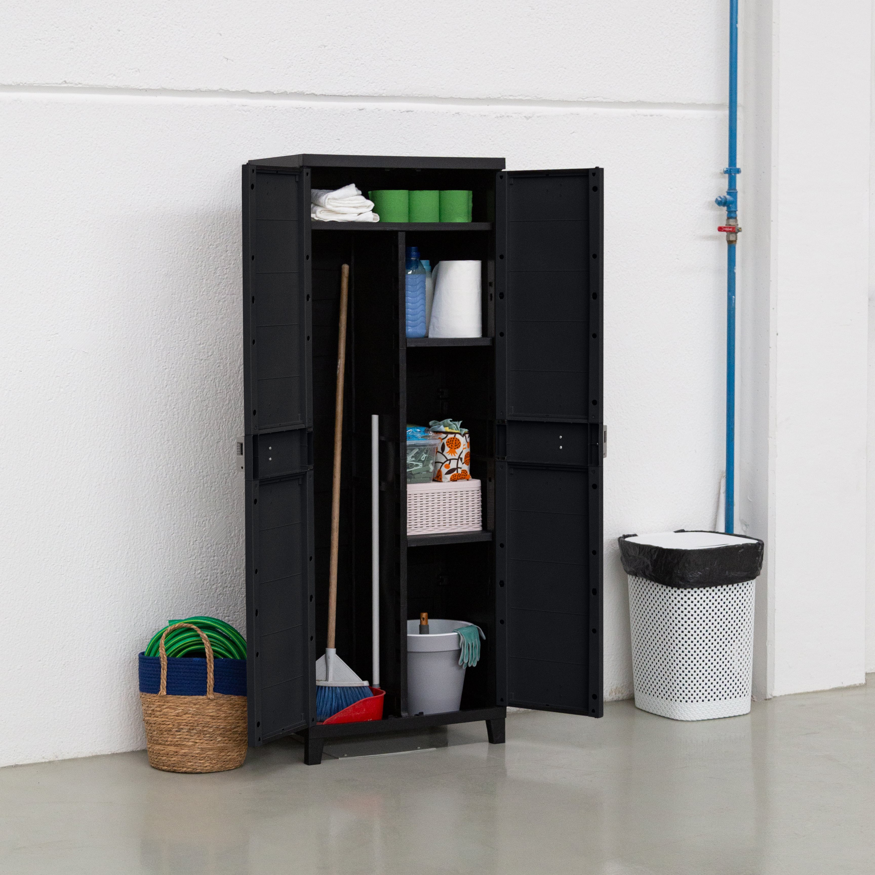 The SMART utility cabinet offers multiple shelves for better organization. Each shelf allows you to store items in an orderly and accessible way. Made of durable plastic, it is lightweight and easy to move. Ideal for garages, basements or outdoor spaces, it combines practicality and versatility in a simple design. The 2 doors protect the contents, ensuring safe storage. This cabinet is an effective solution for keeping cleaning tools in order, offering convenience and functionality for a well-organized home environment.