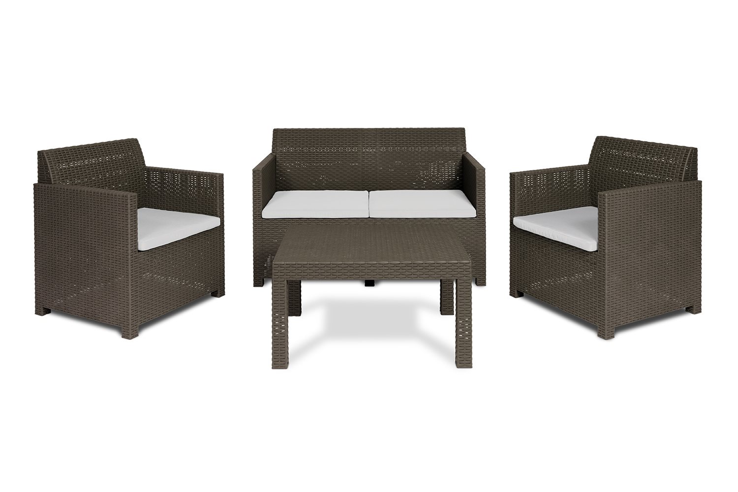 Set di 2 poltrone con cuscini e 1 tavolo da giardino largo